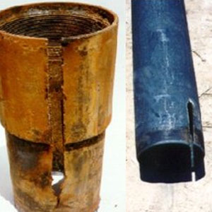 Unlike conventional cutters, the split-shot cutter fires a vertical linear charge which splits the tubing collar and separates the coupling, releasing the pipe for easy removal. Unlike conventional jet-cutters which create a “belling” effect, split-shot cuts clean, resulting in only a slight distortion of the tube. Split-shot’s small diameter allows it to move easily past obstacles to get to the required depth. The tubing cutter is 1 3/8″ diameter and cuts from 2″ through 3 1/2″.