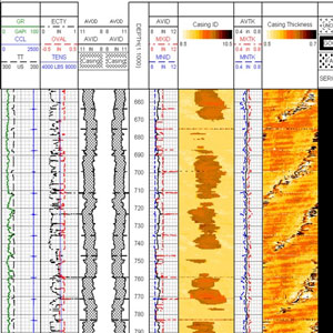 The X-Y Caliper uses two separate caliper axis to determine borehole diameter. Cemeting volumes can be achieved by averaging each of the caliper axis recorded.